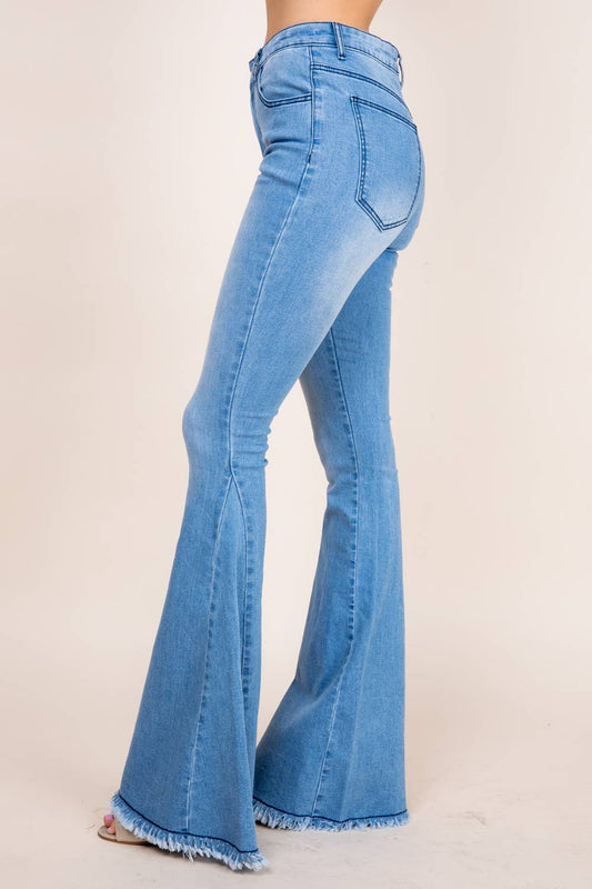 Zenana Acid Washed Frayed Hem Bootcut Jeans
