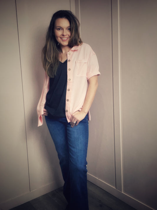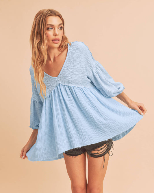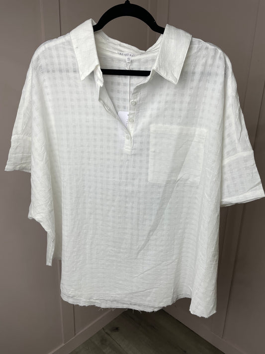 Aemi + Co Side Slit V-Neck Short Sleeve Blouse