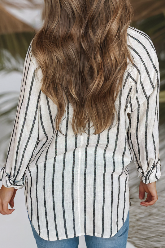 V-NECK STRIPED MID-SLEEVE SHIRT